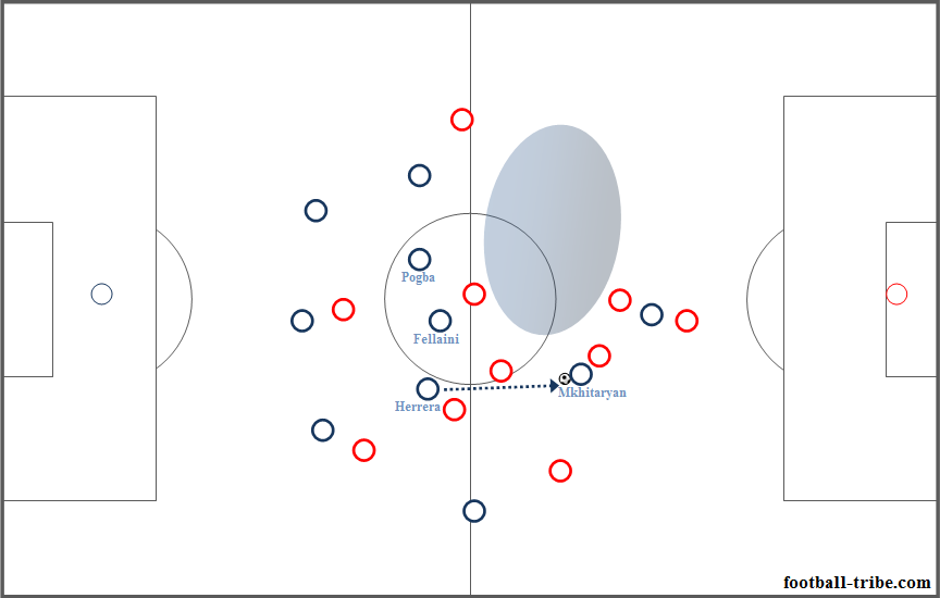 Keterbatasannya, Felllaini memang bukan pemain yang punya mobilitas baik. Ia tidak eksplosif seperti Mkhitaryan atau Thiago Alcantara, misalnya. Kreativitasnya tidak sebaik Mkhitaryan atau Thiago. Konsekuensinya, untuk mengisi pos nomor 10, dalam fase menguasai bola, Mkhitaryan atau Mata yang masuk ke ruang tersebut.