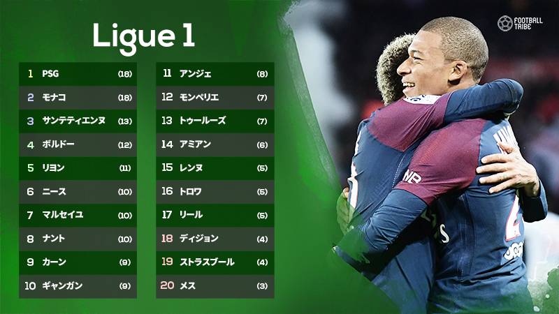リーグ・アン 第7節 順位表