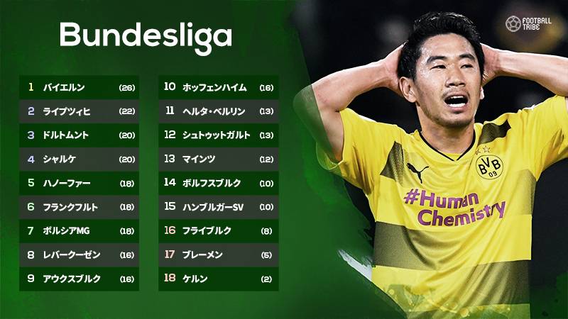 ドルトムント香川、バイエルン戦で先発もチームは敗戦。森岡は今季7ゴール目をあげ勝利に貢献。日本人選手の活躍まとめ【侍WATCH】