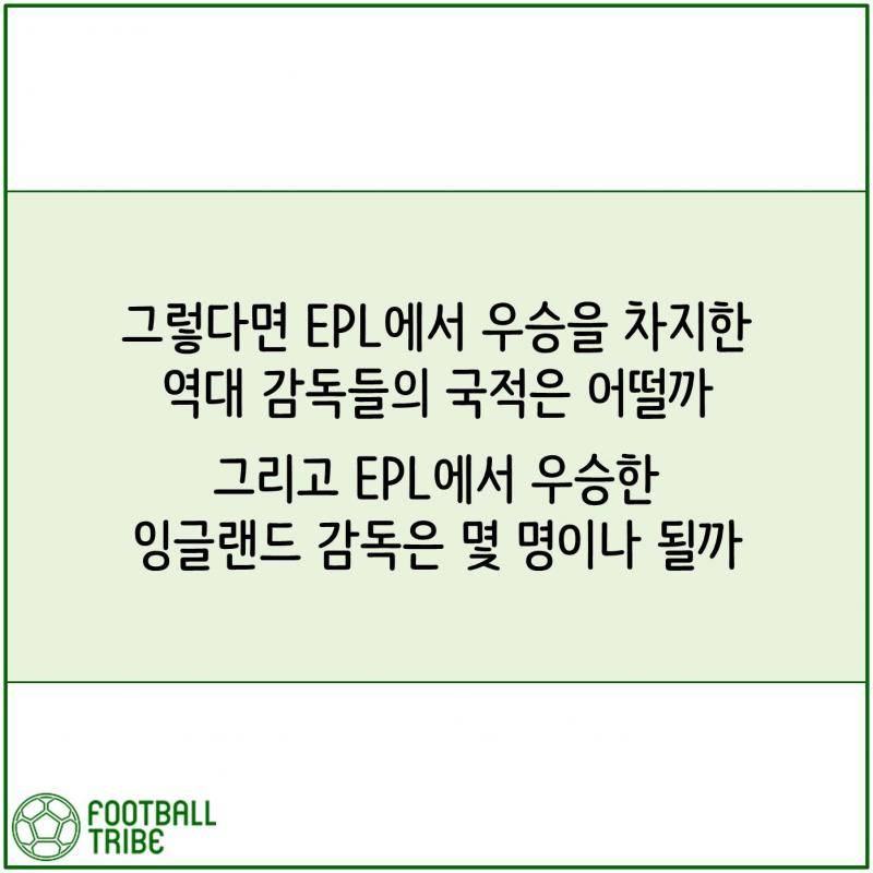 [카드 뉴스] 역대 EPL 우승 감독들의 국적 순위 TOP 6