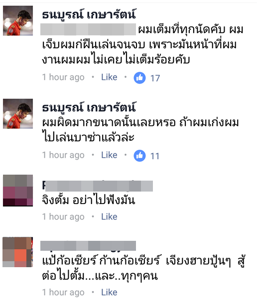 ธนบูรณ์ เกษารัตน์ ออกมาจวกโค้ชคีย์บอร์ดในเฟสบุ๊ค หลังจากโดนวิจารณ์ว่าเล่นไม่เต็มที่ ทำให้เชียงราย ยูไนเต็ด บุกไปพ่ายราชนาวี ในเกมกลางสัปดาห์ที่ผ่านมา