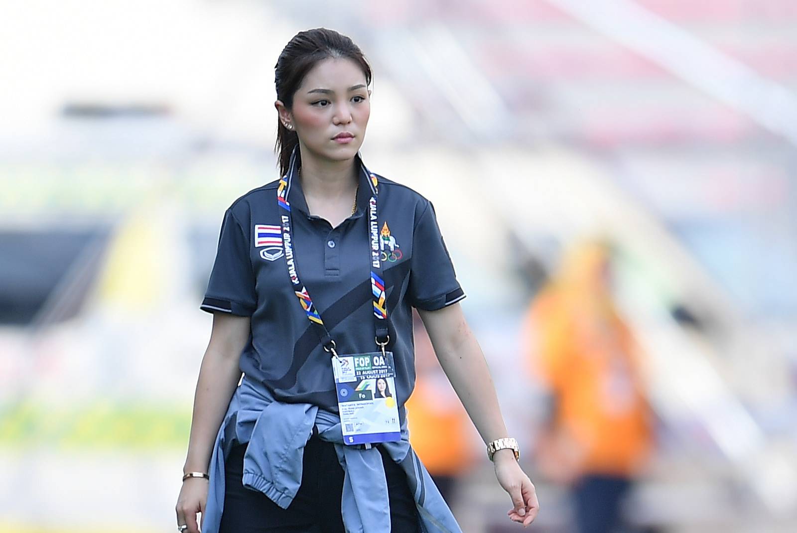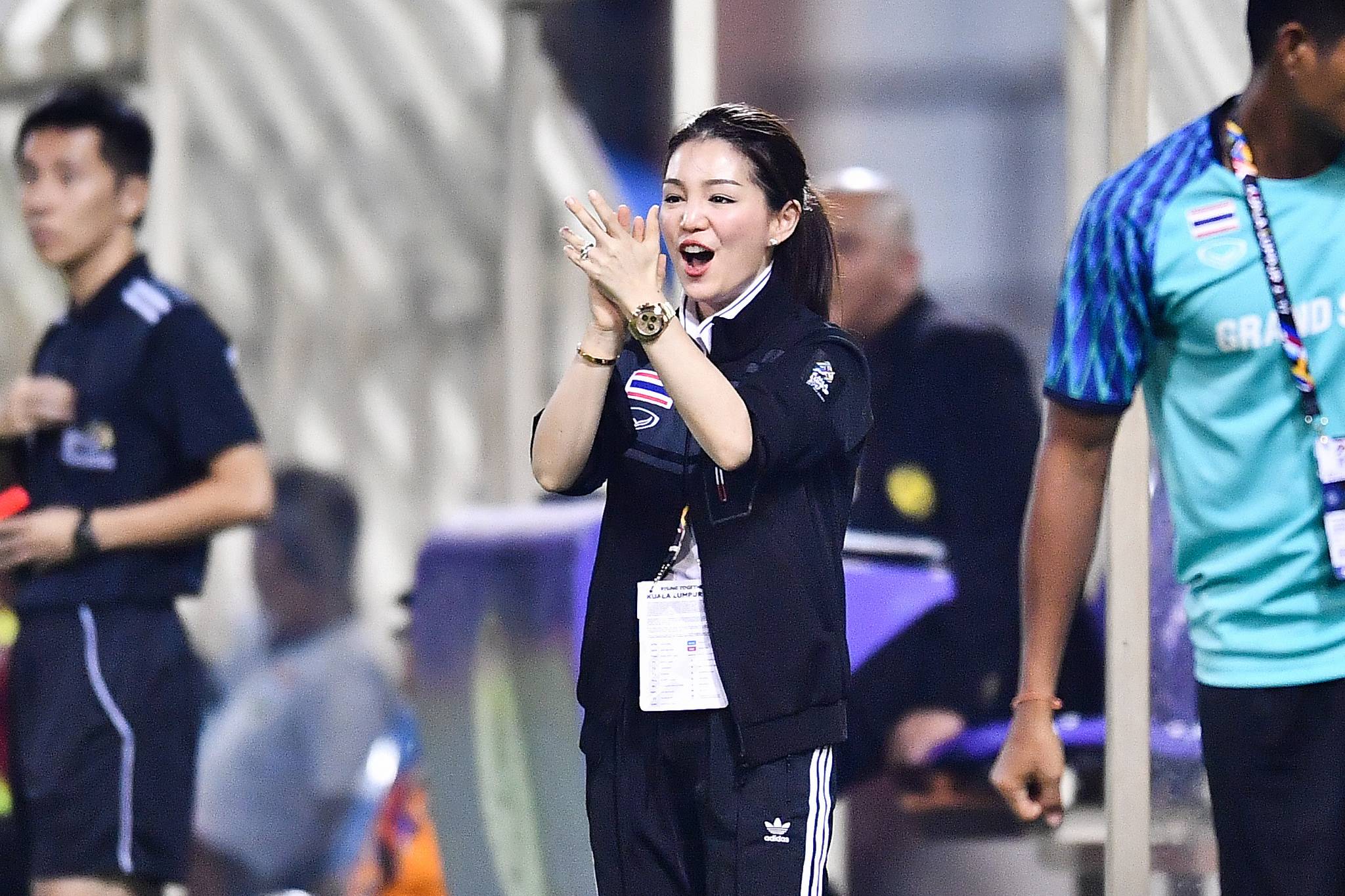 มาดเข้มๆของมาดามเดียร์ที่เดินมาดูแลนักเตะหลังจบเกม ด้วยแววตาที่บอกว่า “ทีมชาติไทยไม่กลัวใครในอาเซียน”