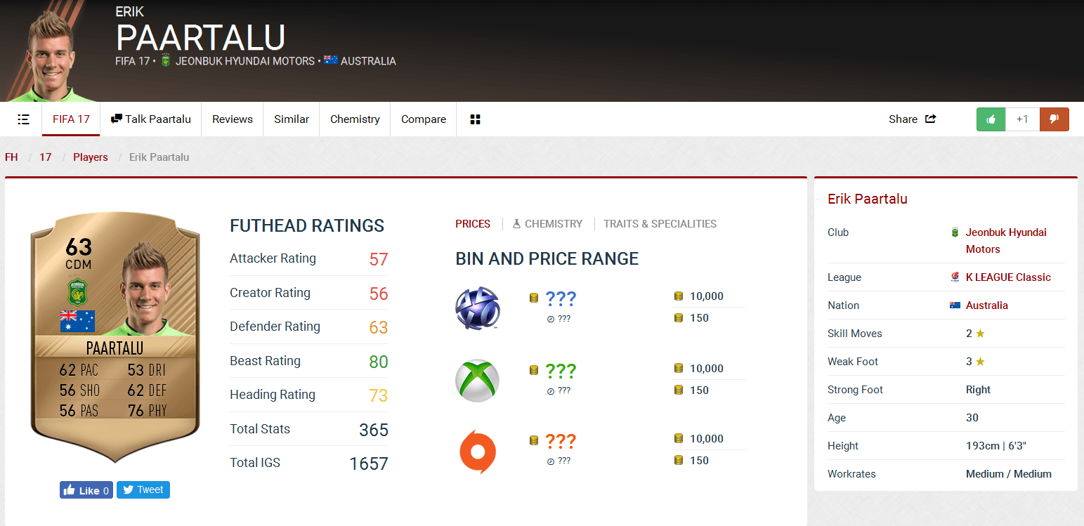หลังกลับไปค้าแข้งในบ้านเกิดกับ เมลบิร์น ซีตี้ดาวเตะจอมพเนจรจากออสเตรเลีย อยู่ 2 ฤดูกาล แข้งชาวออสเตรเลียก็ชีพจรลงเท้าอีกครั้ง ด้วยการย้ายไปร่วมทัพ ชุนบุค ฮุนได มอเตอร์ส เมื่อปีก่อน มาจนถึงการย้ายมาเล่นกับเบงกาลูรู ในลีกสูงสุดของอินเดียเมื่อเดือนมิถุนายนที่ผ่านมา โดยในภาค 17 นี้ แม้เจ้าตัวจะย้ายไปร่วมทีมดีกรีแชมป์เคลีก แต่ค่าพลังโดยรวมกลับลดลงจาก 66 ในภาคที่แล้วเหลือเพียง 63 โดยค่าพลังที่โดดเด่นที่สุดคือ Strength ที่ 82 ตามมาด้วยการยิงไกลที่มีค่า Shot Power 69 และ Long Shots 64 ในขณะที่ค่าพลังที่สำคัญในตำแหน่งมิดฟิลด์อย่าง Short Passing ได้เพียง 63 เท่านั้น