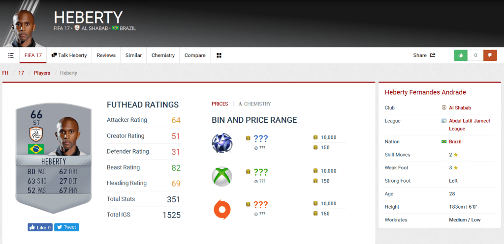อดีตตำนานราชบุรี ที่ปัจจุบันย้ายกลับมาค้าแข้งในไทยอีกครั้งกับเอสซีจี เมืองทอง ยูไนเต็ด มีค่าพลังที่ไม่สูงนักหากเทียบกับแข้งต่างชาติรายอื่นเมื่อครั้งที่มีโอกาสลงสนามให้อัล ชะบ๊าบ ในลีกซาอุดิอาระเบีย โดยมีค่าพลังรวมเพียงแค่ 66 อย่างไรก็ดีดาวยิงวัย 28 ปียังมีจุดเด่นอยู่ที่ความรวดเร็ว โดยมีค่า Acceleration ที่สูงถึง 82 ส่วนค่าการยิงประตูถือว่าไม่เลวสำหรับลีกซาอุฯ ด้วย Shot Power 70 และ Finishing 64 แต่ที่น่าแปลกใจคือแข้งเทพฟรีคิกแห่งไทยลีก กลับมีค่า Free Kick เพียงแค่ 39 เท่านั้น