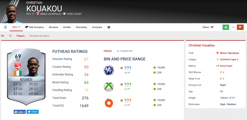 กองหน้าชาวไอวอร์ โคสต์ ที่ปัจจุบันย้ายมาเล่นให้ก็องในลีกเอิง เป็นหนึ่งในอดีตศิษย์เก่าของไทยลีกที่มีค่าพลังพอใช้ได้ในภาคนี้ ด้วยค่าพลังรวม 69 การเลี้ยงบอลและความว่องไว ยังเป็นจุดขายของเขาในเวทียุโรป ด้วยค่า Dribbling ที่ 71 และ Agility 85 รวมไปถึงค่า Acceleration 84 และ Sprint Speed ที่สูงถึง 90 เลยทีเดียว ส่วนเรื่องการยิงประตู แม้ Shot Power จะได้แค่เพียง 63 แต่ค่า Finishing ก็มีถึง 70 เลยทีเดียว