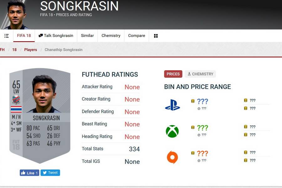 FIFA 18 เกมฟุตบอลยอดนิยมเผยค่าพลังนักเตะในโหมด Football Ultimate Team (FUT) ออกมาเป็นที่เรียบร้อย โดยชนาธิป สรงกระสินธ์ แข้งไทยคนเดียวในเกมมีค่าพลังโดยรวมอยู่ที่ 65