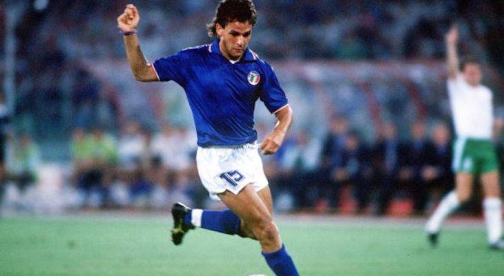 1990 World Cup Quarter Final. Rome, Italy. 30th June, 1990. Italy 1 v Republic Of Ireland 0. Italy’s Roberto Baggio on the ball.