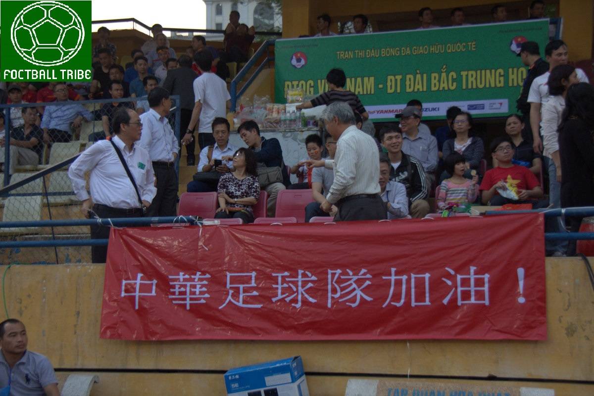 Các CĐV ĐT Đài Bắc Trung Hoa cũng có mặt ở một góc nhỏ tại khu vực khán đài A sân Hàng Đẫy với tấm băng rôn “Đội tuyển Đài Loan quyết thắng”