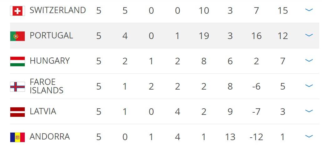 Thụy Sỹ với năm trận toàn thắng đang dẫn đầu bảng B với 15 điểm. Bồ Đào Nha đang duy trì thế bám đuổi với 12 điểm có trong tay. Với việc Bồ Đào Nha có được chiến thắng trước đối thủ trực tiếp là Hungary thì cục diện ở bảng B chỉ còn là cuộc đua song mã giữa “Brazil châu Âu” và Thụy Sỹ.