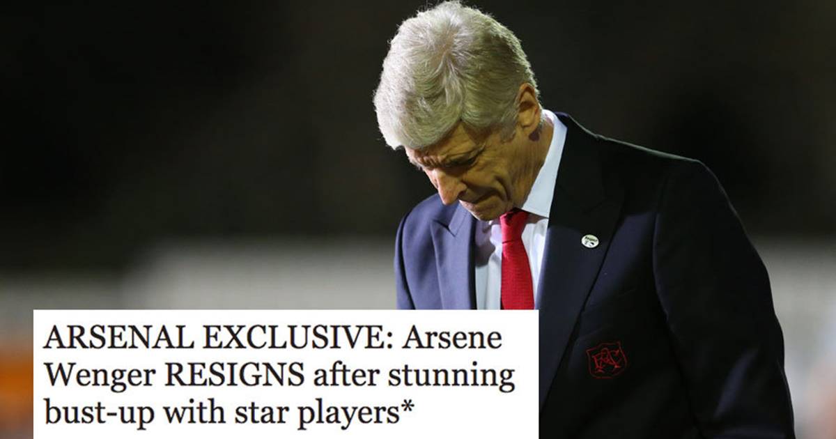 Giữa những chỉ trích về phong độ kém cỏi của Arsenal thời gian qua, Arsene Wenger bất ngờ từ chức sau một cuộc ẩu đả với 1 ngôi sao của Pháo thủ. Tờ Express giật tít như vậy vào ngày Cá tháng Tư nhưng có lẽ, không ít Gooners chỉ mong dòng tít ấy trở thành sự thực.