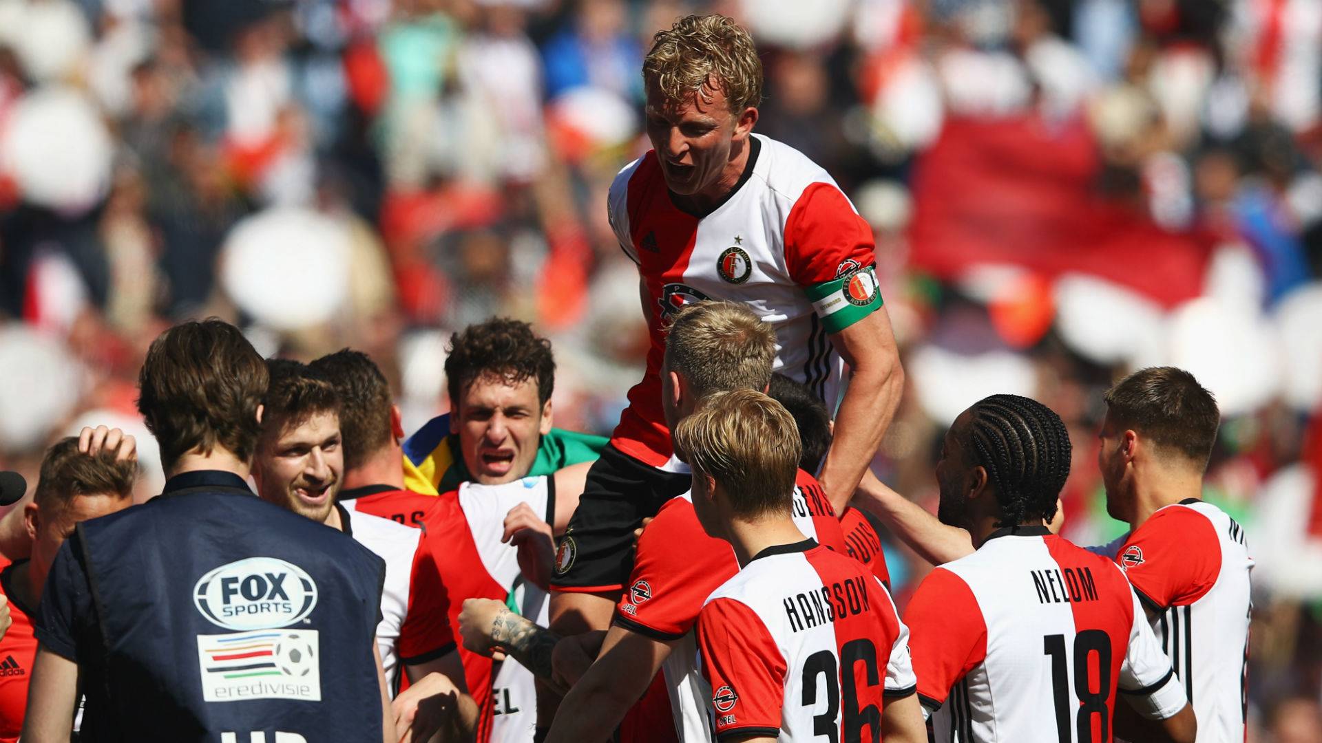 Feyenoord vô địch Hà Lan sau 18 năm: Đội trưởng, lão tướng Dirk Kuyt đã đưa Feyenoord lên ngôi vô địch Eredivisie sau khi lập hat-trick giúp đội nhà giành chiến thắng 3-1 trước Heracles ở vòng đấu cuối cùng của mùa giải.