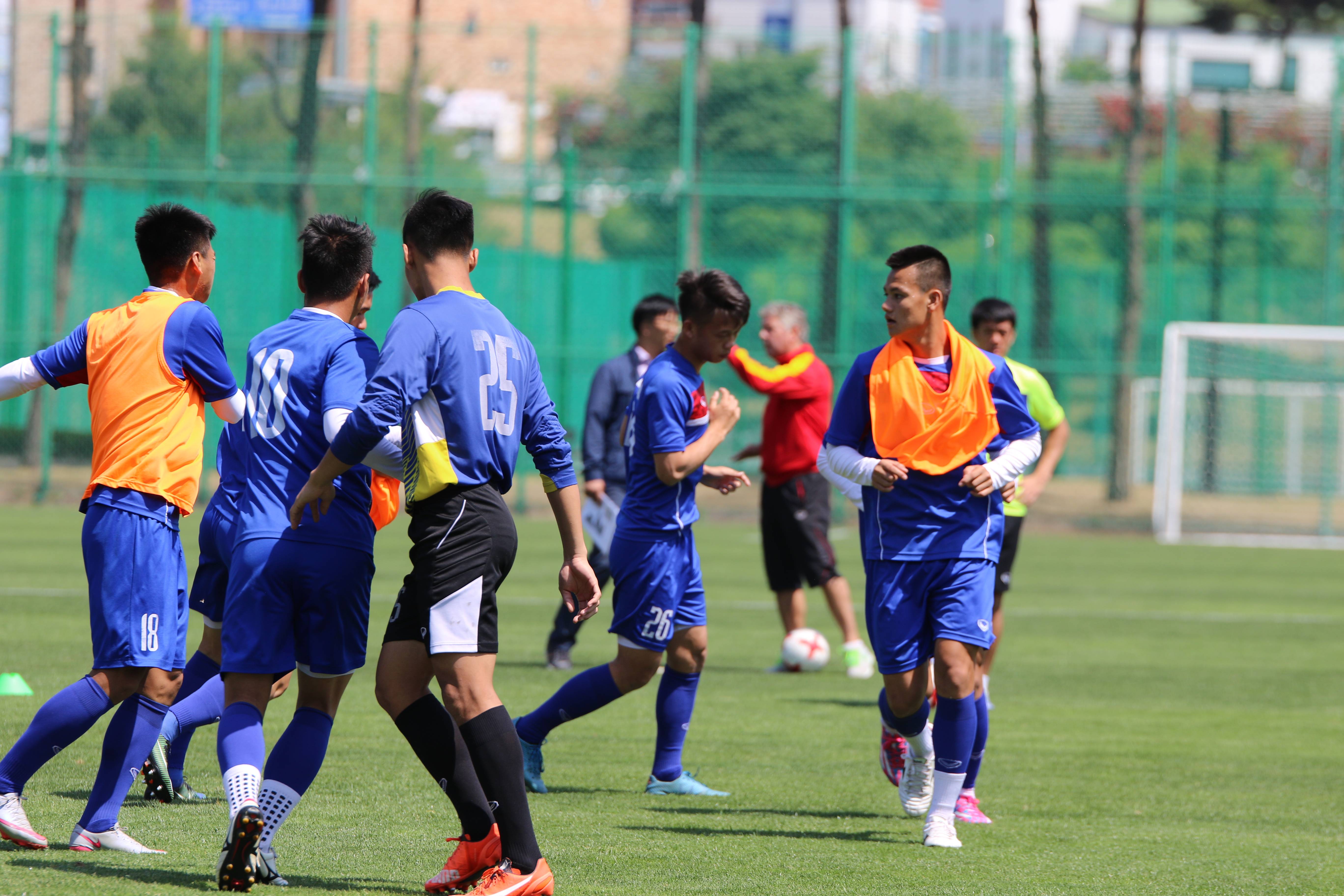 ĐT U20 Việt Nam sau bước vào buổi tập đầu tiên tại Trung tâm bóng đá Cheonan. Chất lượng mặt sân tại Hàn Quốc tương đối tốt.