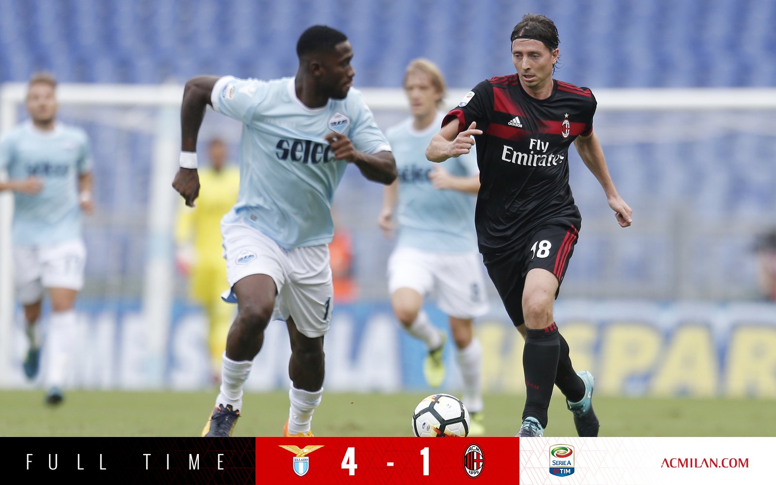 AC Milan đã thất bại tới 1-4 trước Lazio. Riêng tiền đạo Ciro Immobile lập một hat trick, Luis Alberto là người ghi bàn còn lại cho Lazio. Ricardo Montolivo là người lập công cho AC Milan.