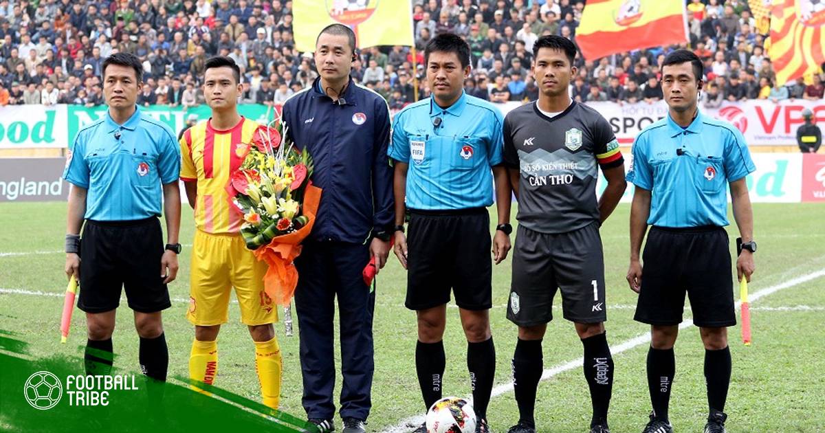 4. Trọng tài Trọng Thư bị phản ứng trên sân Cần Thơ